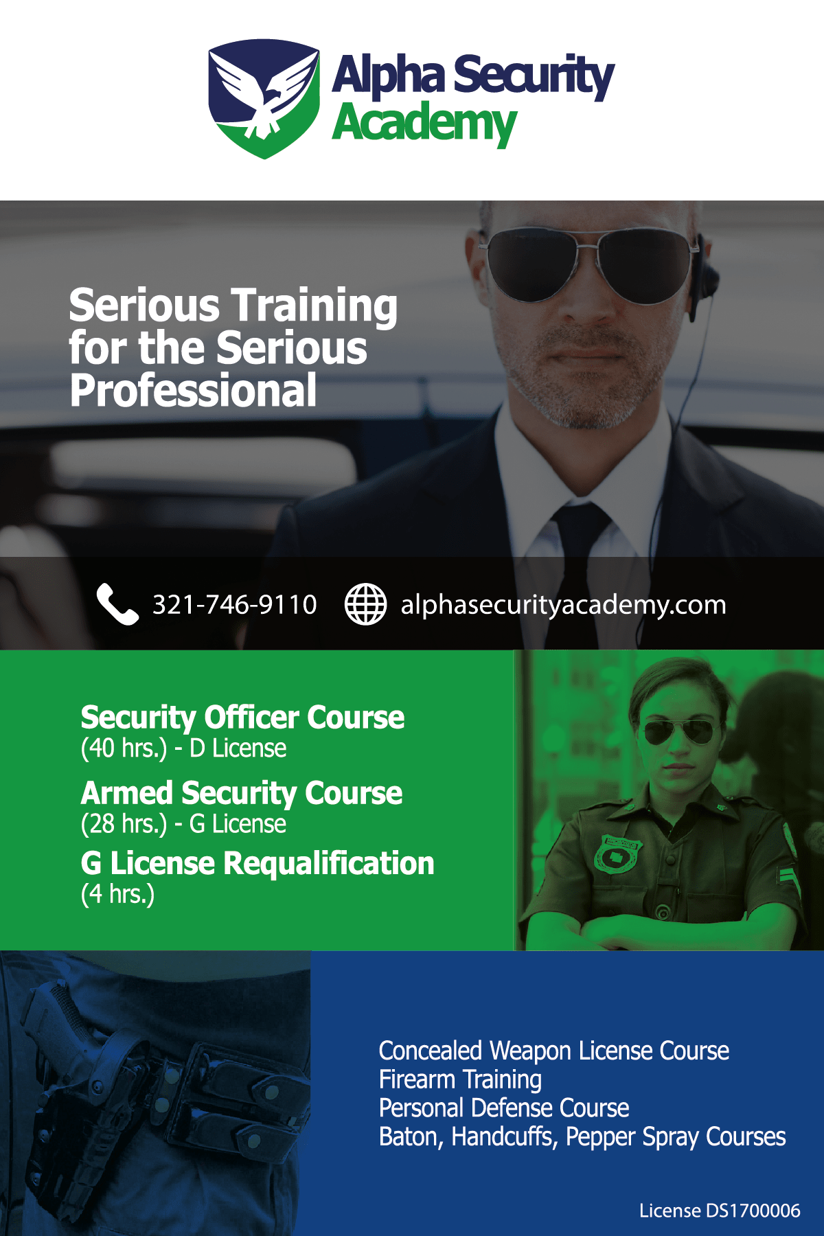 Alpha security academy offers the best security courses in Orlando. We offer job placement assistance, so that you can start earning money as a security officer after completing your training. Security officers are in high demand right now and we want you to be prepared for this great career opportunity